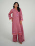 Soft and feminine, the blush pink semi formal wear features delicate floral embroidery and subtle hand embellishments. Paired with a matching dupatta and wide-leg pants, it is a graceful yet relaxed look for festive occasions or daytime events.
