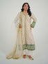 Step into timeless elegance with this stunning ivory ethnic ensemble, adorned with intricate gold motifs and exquisite emerald, green embroidery on border. The outfit is a long, straight-cut kurta designed in a luxurious silk - soft, graceful flow. The detailed embellishments on the neckline, sleeves, and hemline add a regal touch, making it perfect for festive and formal occasions.